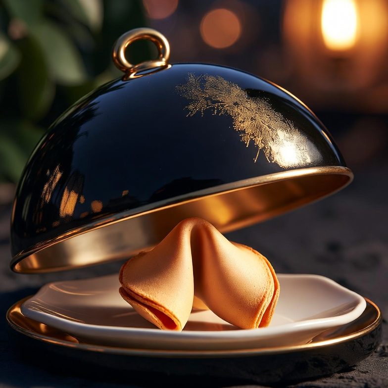 Im Mittelpunkt steht ein individuell gestalteter Glückskeks – stilvoll präsentiert, mit einer Botschaft, die Ihr Haus widerspiegelt.